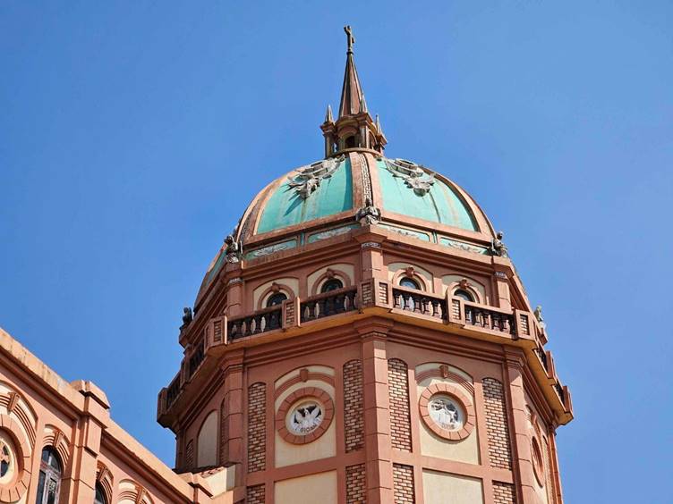 Toàn bộ công trình mang dáng vẻ chắc khỏe, với các khối kiến trúc được tổ chức theo chiều hướng nhỏ dần lên phía đỉnh. Hệ thống cửa vòm liên tiếp, phủ màu đỏ gạch nung mộc mạc, vừa tạo chiều sâu thị giác, vừa gợi cảm giác ấm áp giữa vùng đất nắng gió. Mỗi chi tiết, từ đường nét, tỷ lệ đến cách xử lý vật liệu, đều cho thấy sự tỉ mỉ và công phu trong thiết kế, thi công.
