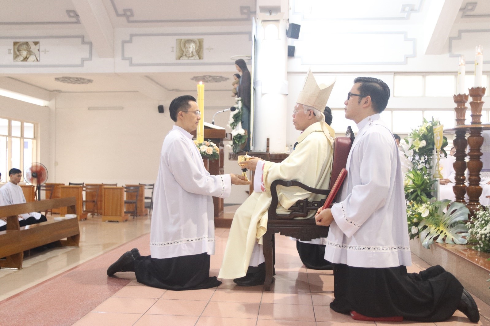 Như truyền thống hằng năm, vào Chúa nhật IV Phục sinh, lễ Chúa Chiên Lành, ngày 11 tháng 5 năm 2025, Đức Cha Giuse Huỳnh Văn Sỹ, Giám mục Giáo phận Nha Trang đã cử hành Thánh lễ với Nghi thức trao ban thừa tác vụ Đọc sách cho 32 Chủng sinh lớp Thần học II và thừa tác vụ Giúp lễ cho 29 Chủng sinh lớp Thần học III. Cùng đồng tế có Cha Giám đốc Đại Chủng viện Gioan Baotixita Ngô Đình Tiến, quý Cha trong Ban Giám đốc cùng sự hiện diện của toàn thể cộng đoàn Chủng viện.