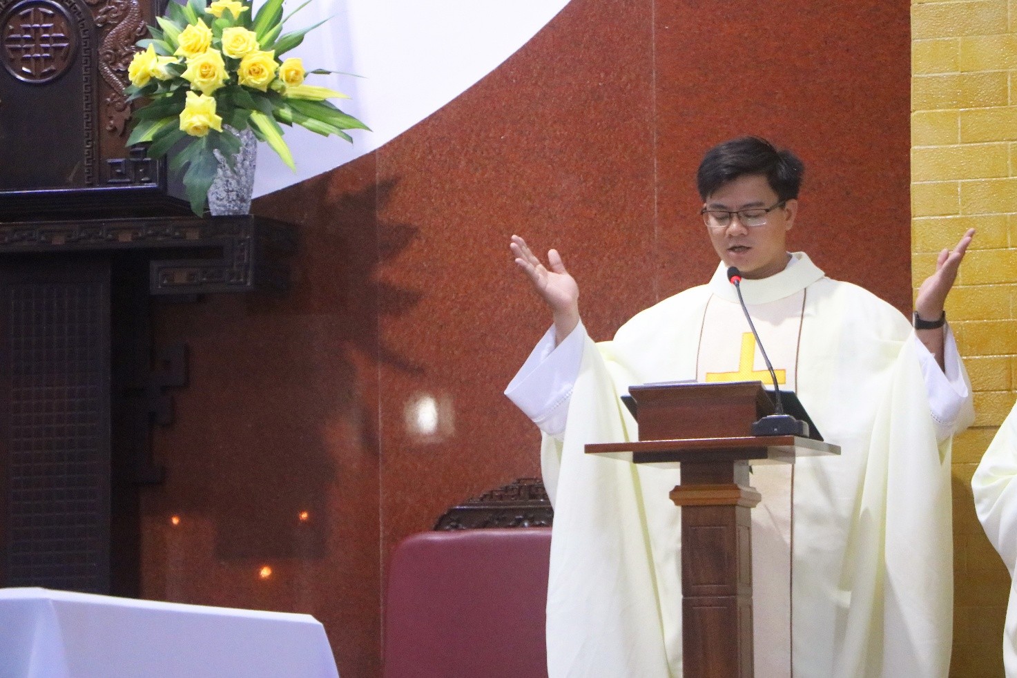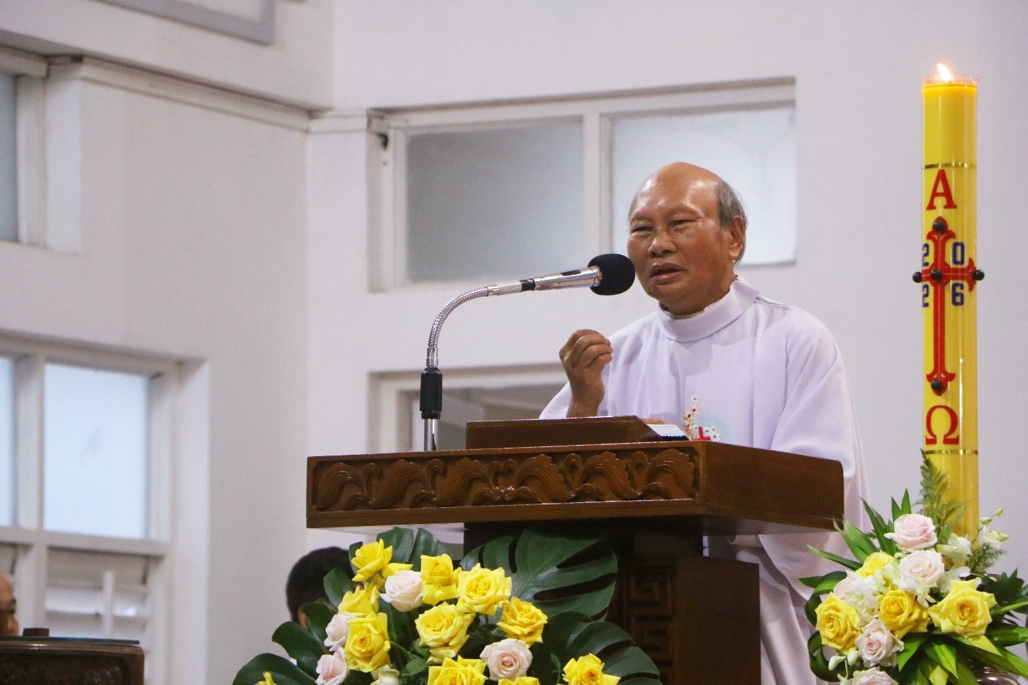 Trong bài giảng, Cha giáo Anrê đã thân tình chia sẻ với quý Tân Linh mục và cộng đoàn về chủ đề Thánh Thể: Ngài nhấn mạnh rằng chính Thánh Thể là điều làm cho chúng ta được nên đồng hình đồng dạng với Đức Kitô. Cha cũng mời gọi các tân Linh mục luôn biết trở về với “ngôi trường” mang tên Bí tích Thánh Thể, ngôi trường mà các Cha sẽ không bao giờ tốt nghiệp. Bởi lẽ, Thánh Thể không chỉ là mầu nhiệm để cử hành, mà còn là chương trình sống mỗi ngày, giúp các Cha ngày càng trở nên những con người thuộc về Thánh Thể.